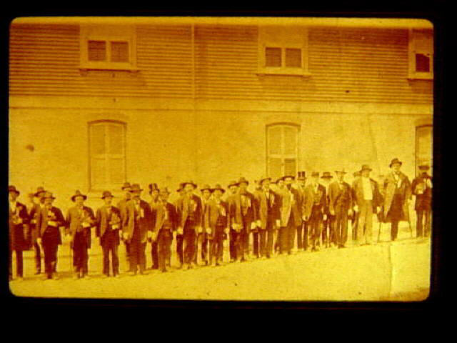 EV 1 c. 1880 Woonsocket GAR veterans of the Civil War at a reunion. Thirty-seven Woonsocketers gave their lives during the war. Names are inscribed in the Civil War monument at Monument Square.