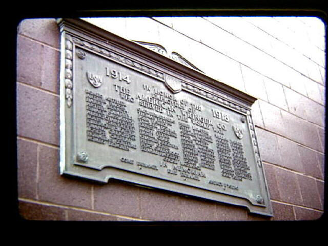 MO 33 1984 World War I plaque at Woonsocket Post Office on Social Street. Plaque commemorates employees of American Wringer Company which was located near this site who served in World War I.