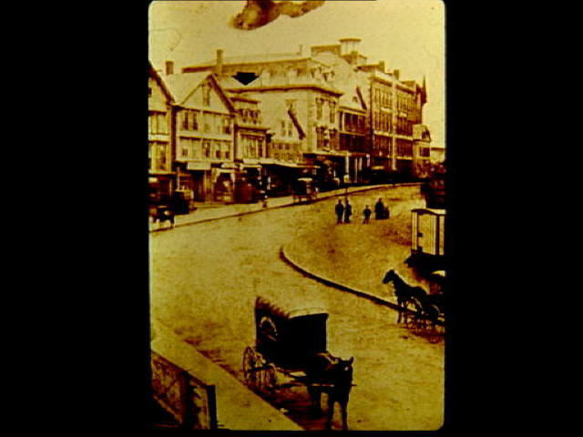 and houses along street at site where Court Street bridge would be constructed in 1895.