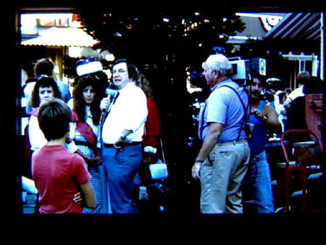 EV 207 1988 Woonsocket Centennial Celebration in 1988. Main Street Block Party during the centennial year. WWON's Dave Richards interviewing Centennial Princesses in front of Channel 10 camera.