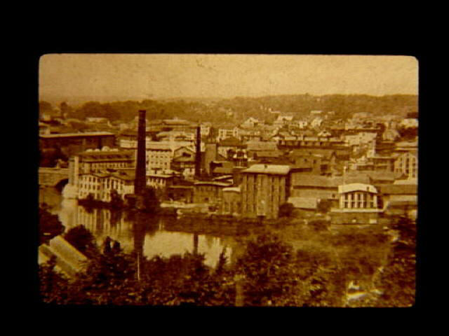 AV 7 1904 Aerial view of Woonsocket Falls showing many mills.