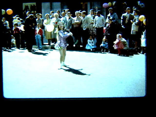 EV 60 1958 Mardi Gras parade showing a young baton twirler.